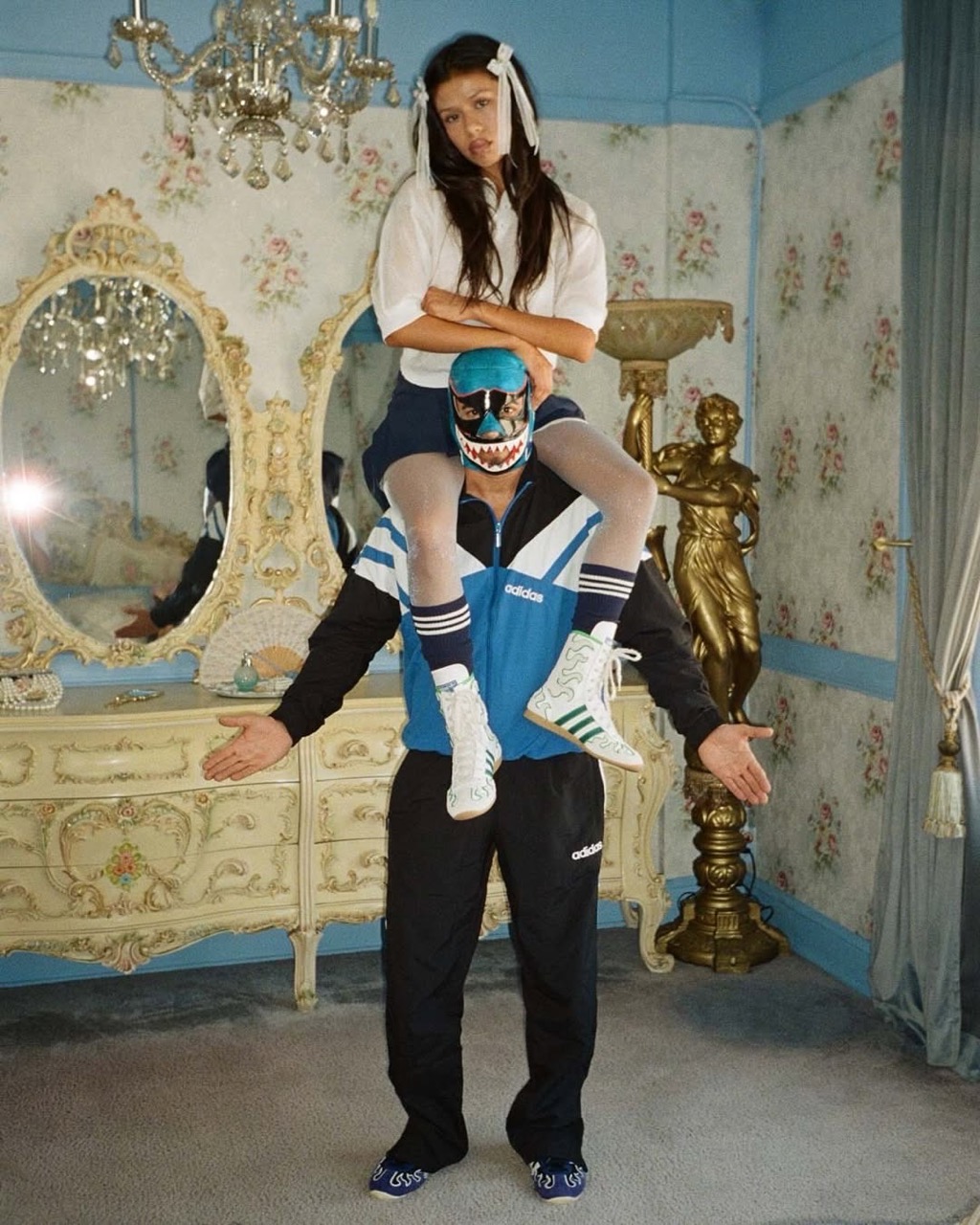 There’s a new girl in the wrestling ring and she’s wearing bows in her hair. For those who grew up on WWE and Pinterest: this drop speaks your language. Welcome to the wonderful world of Braindead x Adidas, where wrestling boots and coquette aesthetics are merged. In case you thought bows, frills, and wrestling masks had nothing in common, we welcome you to think again.