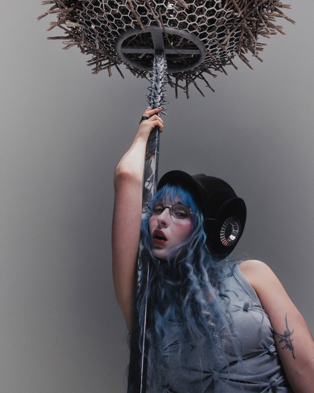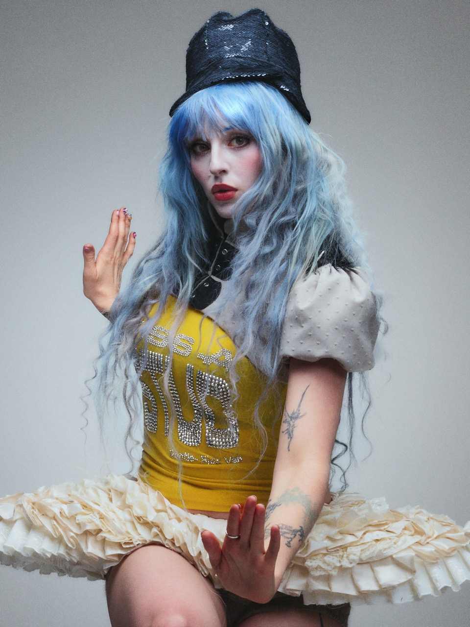 Ashnikko is a chaos queen and a certified maneater. The blue-haired bard of bad behaviour clawed her way from SoundCloud obscurity to global pop star antihero status with her unholy mix of electro, rap, and industrial noise. She’s a hoarder of her own mythology: past egos, heartbreaks, and physical relics — from baby teeth to condoms — all feeding the patchwork of her ever-evolving identity. Across her shifting musical incarnations, Ashnikko remains a big sister figure to her younger self, stepping into enlargements of her many inner worlds with each new project.