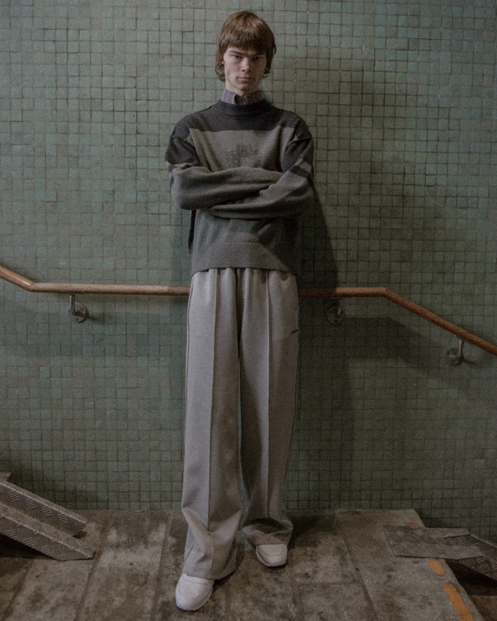 The styling in the campaign images leans almost aggressively laddy: hooligan-coded boys loitering in deserted urban spaces, shaved heads, a slightly intimidating look. It’s not the first time he’s dipped his toes into this world, previously releasing polos with the word ‘Ultras’ plastered on them. Honing football fanatics known for their intense devotion, choreographed stadium displays, pyro use, and constant singing to create an intimidating or passionate atmosphere, makes you wonder – is this collection meant to showcase aggression, or affection? “I’m not interested in nostalgia that feels safe,” adds Davidsen. “I like when something feels a bit uncomfortable – when it reminds you of who you were, not who you pretend to be.”