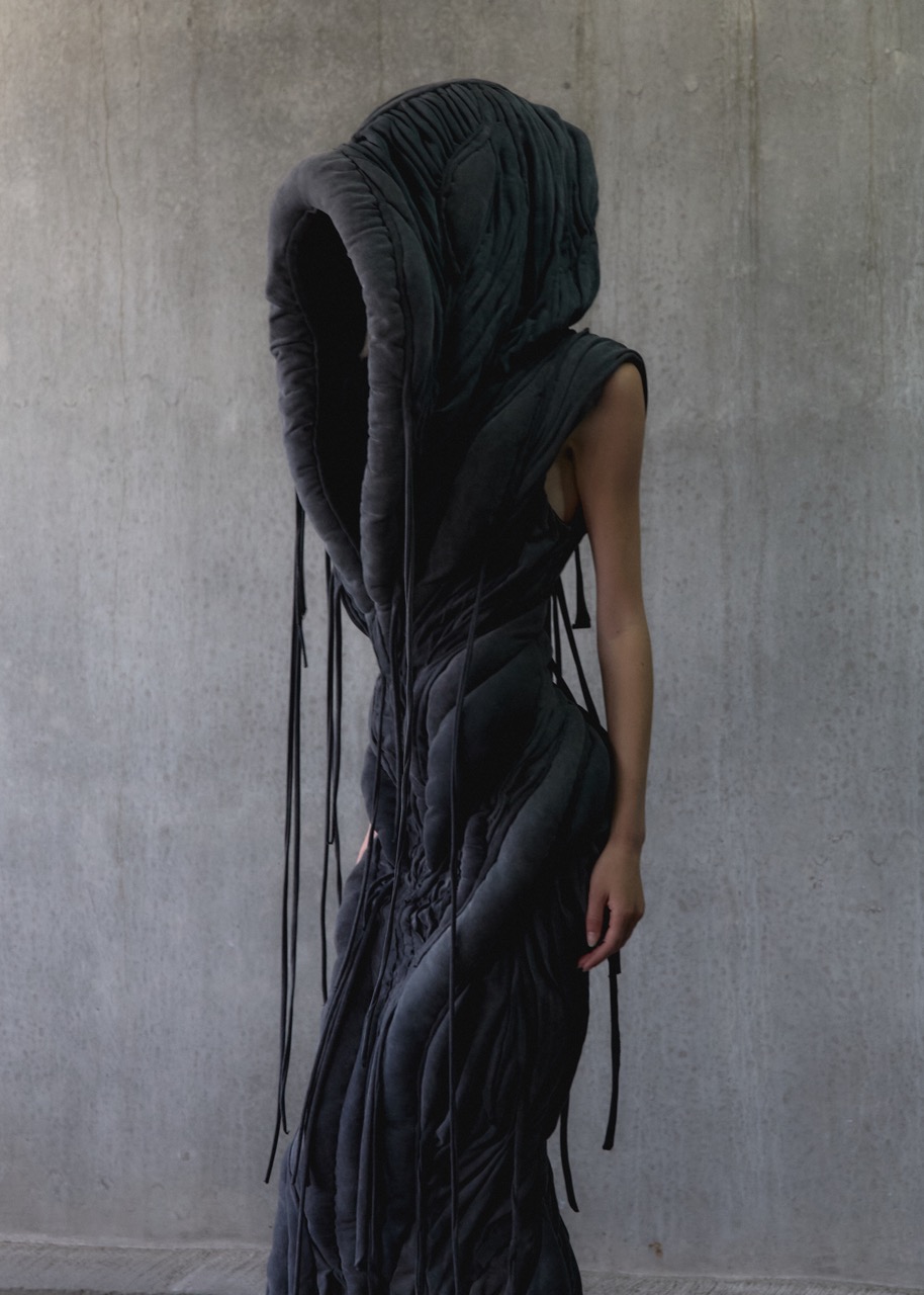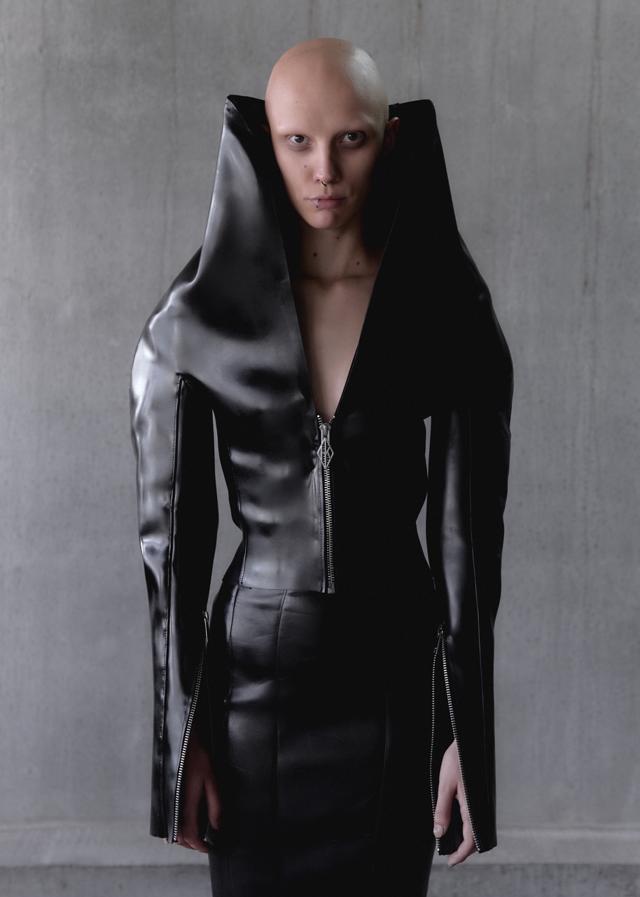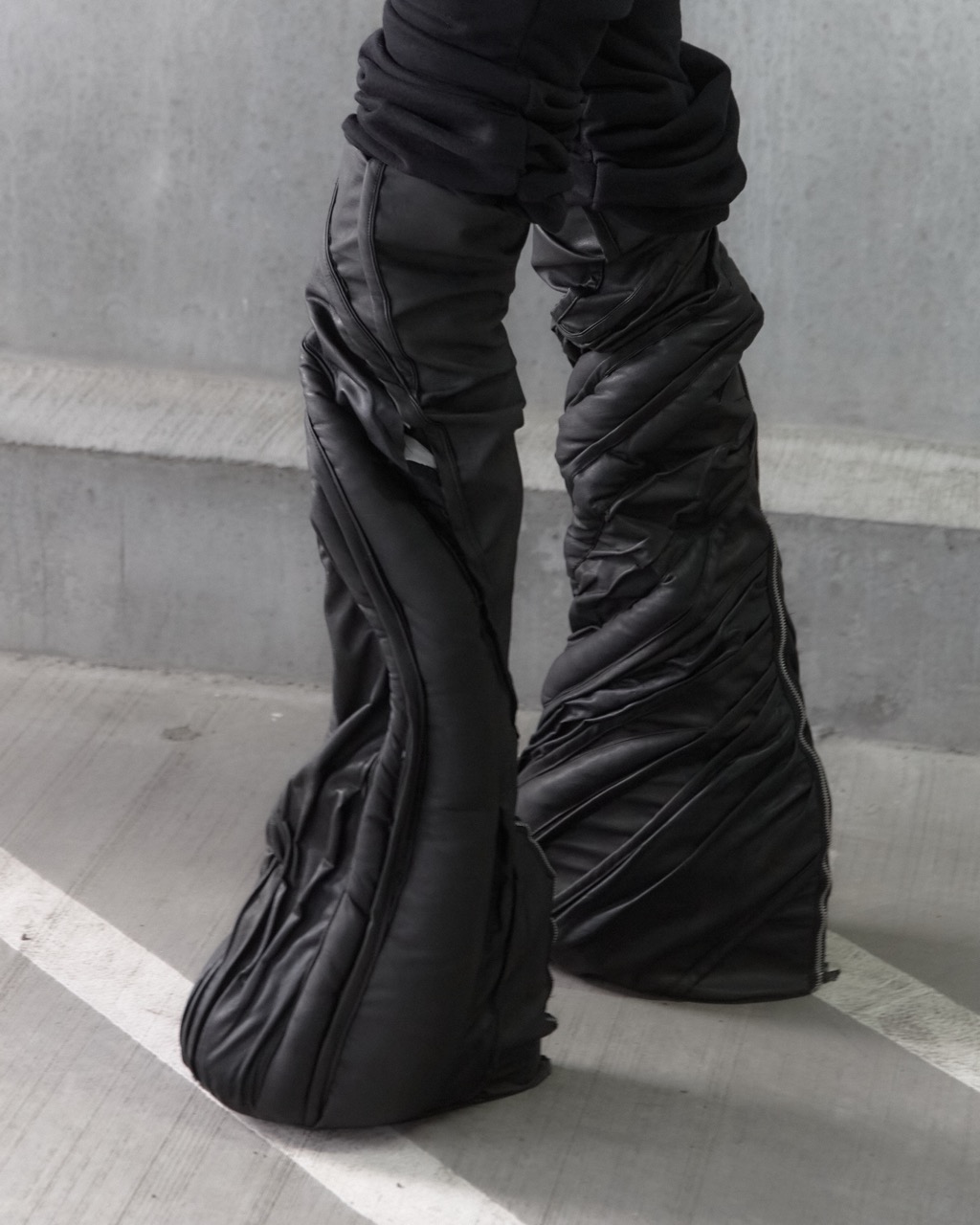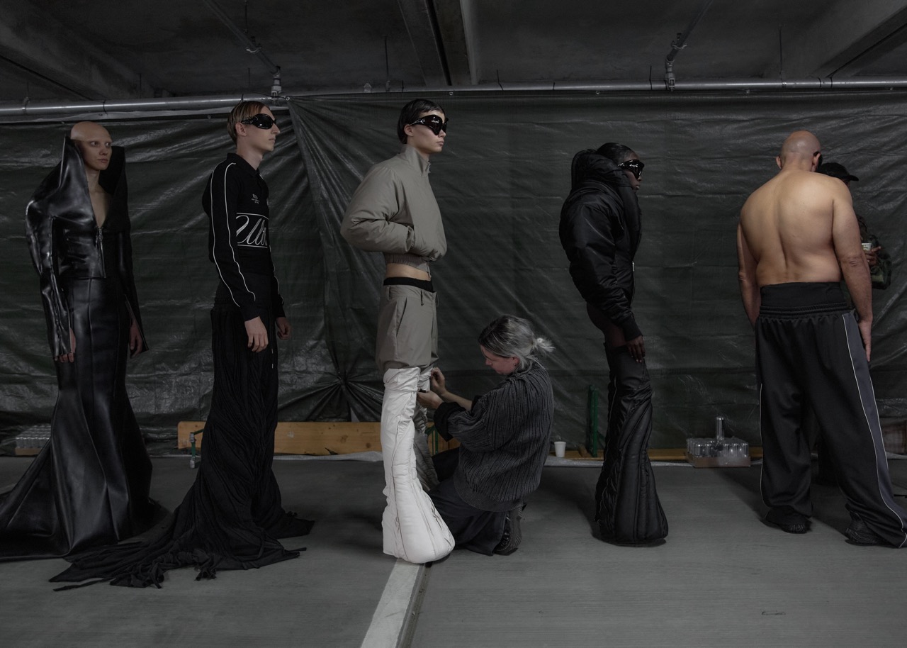 The line-up looked like the 4AM queue outside that kebab shop next to Berghain: armored-up, weirdly sexy, and slightly scary. Or maybe like a dystopian football pitch where everyone’s dressed for a ceremonial standoff, except this time the team is not only wearing their shoulder-padded jerseys, but also bark-like boots, rave gear. It’s the moment just before the ball is thrown in the air, and we’re tensely waiting for that whistle to blow.