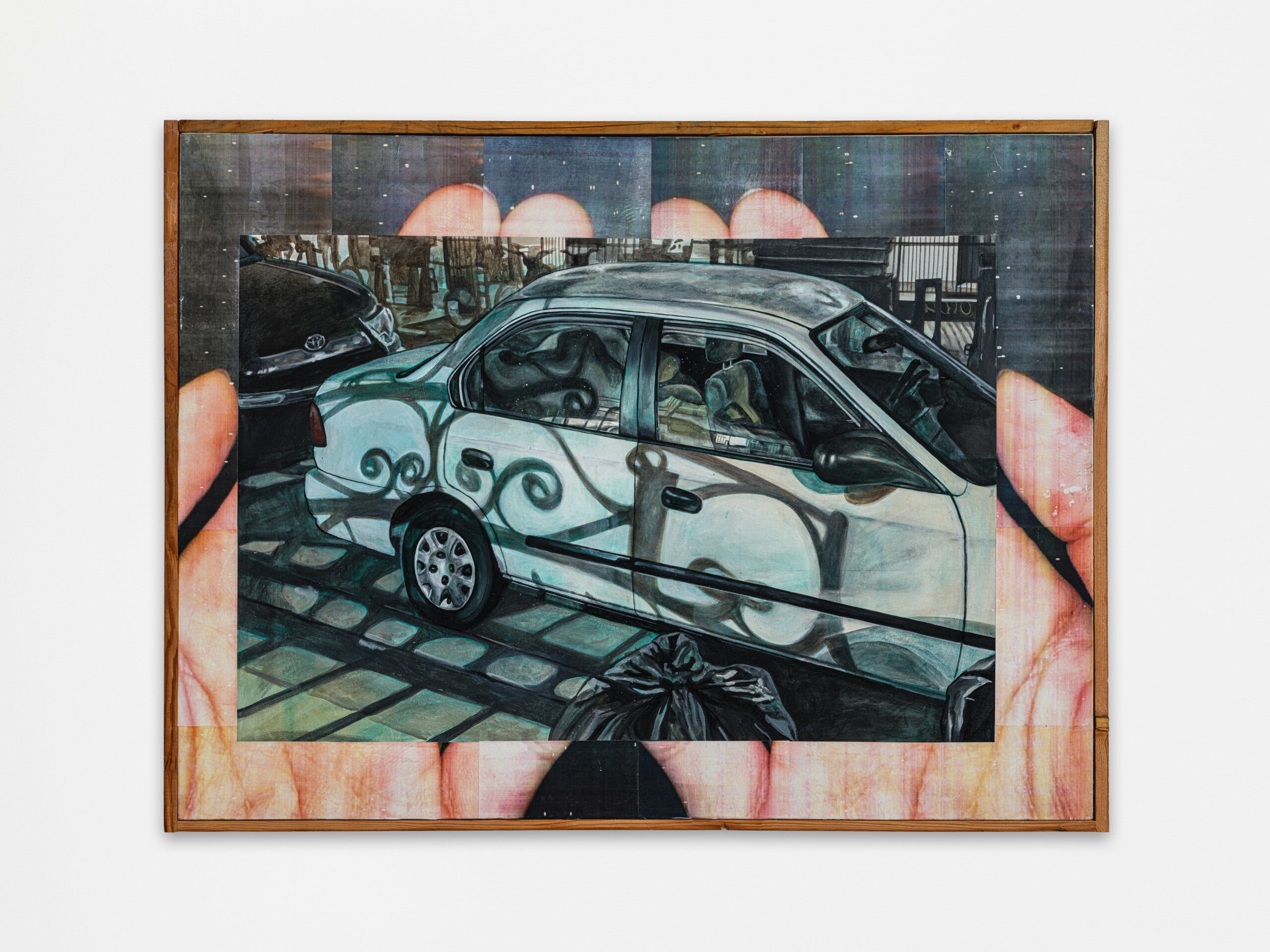 There is a doubleness in the materials I gravitate towards. I want the surfaces of my work to suggest touch, so I lean towards material that feels bodily, skin-like, transparent, or fluid. Silicone, resin, tar gel, and plexiglass really conjure that for me. Without depicting the body directly, texture becomes a language for vulnerability. At the same time, I’m drawn to materials that feel distant or disposable. There’s something compelling to me about hard, industrial materials like cement or scrap wood — their weight, their rigidity, their implied strength. I think about what happens when these materials hold onto something tender or personal. And I like the idea of relocating found objects out of their original context into one that feels intimate. I stare at the ground a lot. Lately, I’ve been collecting Little Trees, McDonald’s fry containers, and bottlecaps. These items carry cultural memory, and when placed within my work, shift from something impersonal into something strangely personal.