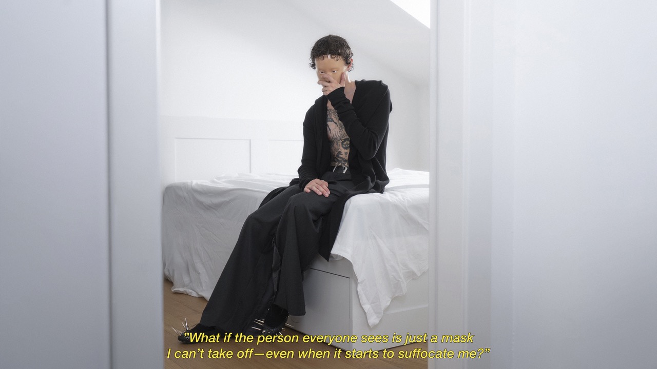 coat RICK OWENS, pants and shoes BRVNO, belt stylist own