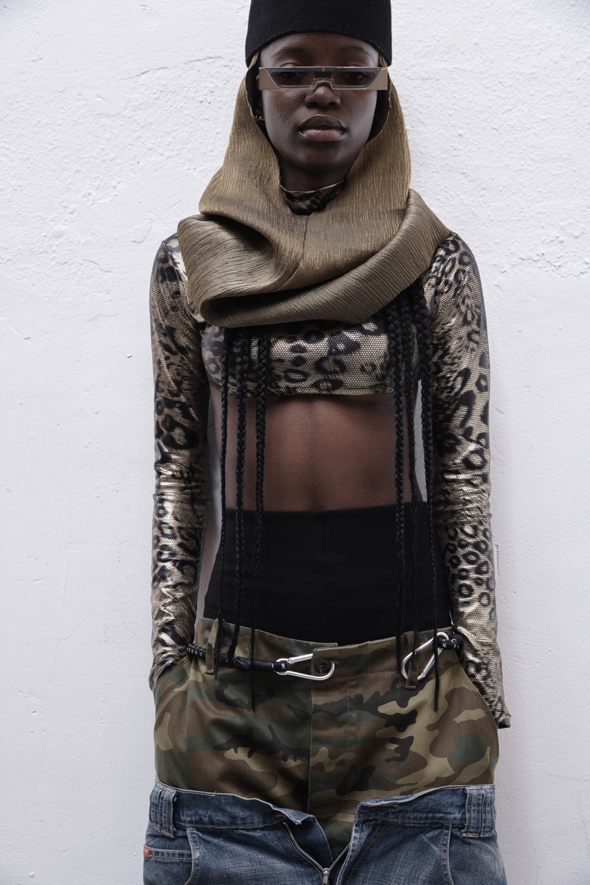 Sunglasses VOA COLLECTIVE, balaclava ANDREA VIENTEC, hat and top CLOSETD08, pants by by INFERNAL BADDIES shoes THE SABINIS