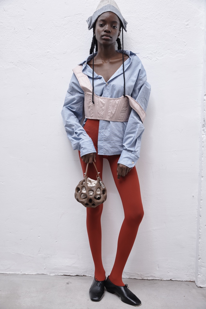Hat by ANDREA VIENTEC , shirt D ́ARS, bustier by VICTOR VON SCHWARZ, skirt KOCHER , shoes THE PAR , tights WOLFORD